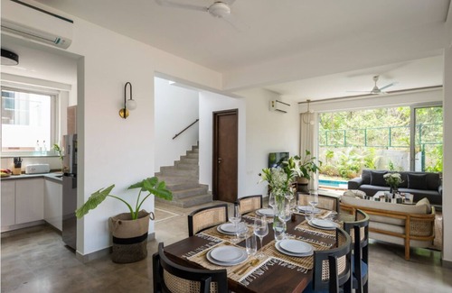 Steep yourself in contemporary, elegant luxury at this designer villa. Its high ceilings and large windows will give you plenty of sun and space. Located in a quiet but well-connected area in Goa, this villa is only a short distance away from some of the best restaurants and bars that Goa has to offer. Equipped with everything you need for a comfortable stay, you can also find a private pool attached for a relaxing dip.