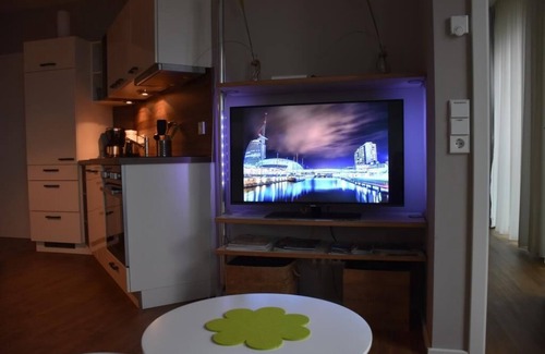 Super view of the Weser in the middle of the Havenwelten, top location is located in Nord-Mitte. Super view of the Weser in the middle of the Havenwelten, top location provides accommodation, featuring TV, Bedding/Linens, Internet, among other amenities. This Apartment features TV, Bedding/Linens, Internet, to make your stay a comfortable one.