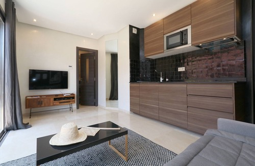 Magnificent studio in the center of Guéliz, between Marrakech Plazza (Mac Do and Zara) and the Medina (Place Jemma El Fna) in a small quiet street parallel to Avenue Mohamed V, close to all the tourist sites and trendy places for have a drink or eat, new residence delivered in May 2018.