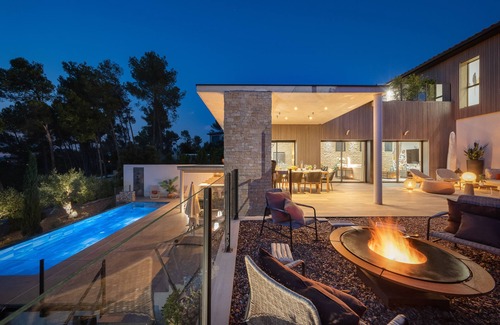 The gym, sauna (hybrid for 4 people), pool bar, outdoor kitchen (fully equipped), heated infinity pool, petanque court and not to mention the personalized decoration of each room combined with designer furniture makes this villa a luxurious and elegant haven for your stay!