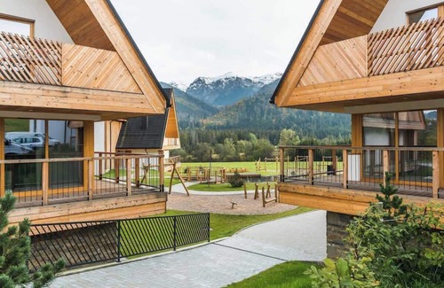 Relax in a comfortable apartment in a green mountain enclave with a view of Giewont, located right next to the Tatra National Park. We offer our guests a space that combines the Podhale tradition with modernity. Here, you will find an outdoor relaxation area, a children's playground, and water ponds that create a charming atmosphere.