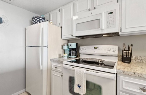 • Thoughtfully appointed with your comfort in mind, the condo is outfitted with an iron and ironing board, luggage rack, hair dryer, beach towels, and a well-stocked kitchen.