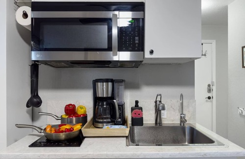 Cute 2 bedroom 1 bath private entry guest suite 5 miles East of Downtown. (2) queen over queen beds, (1) king bed, (1) sofa, (1) folding desks, (2) adjustable desk/kitchen tables, (1) 50" & (2) 32" LED's all with prime and HDTV. 1000 MBPS Fiber private router/Wi-Fi/ethernet. Refrigerator, Dual induction burner, Toaster, Coffee setup and utensils.