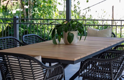 Experience comfort and style with a variety of activities at this beautifully furnished accommodation for up to four guests. Enjoy a quiet workspace, onsite gym, and large private outdoor deck. Whether you're a workaholic, gym enthusiast, beach lover, shopper, or just seeking serenity, "Sweeping Experience" offers it all. Indulge in a relaxing and secluded stay while keeping up with business commitments or unwinding with a book and a glass of wine.