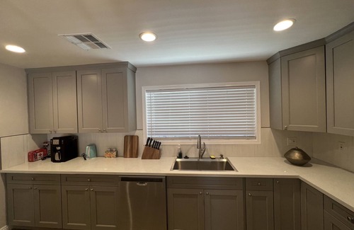 New remodel house clean and cozy easy in and out safe to stay. One living room one bedroom one full-size kitchen all pans pots dishes and fork all provided two 65 inches TV one is at living room one is at bedroom. All new air conditioning close to free way but not public transportation . Welcome to book neighbors are nice quiet. Has gate at the front parking at the backyard