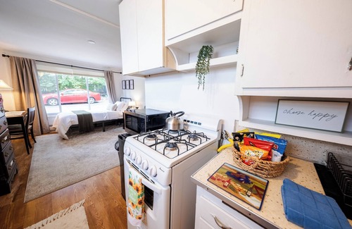 3. Comfortable Sleeping Area: The studio boasts a comfy twin size bed with fresh linens, and a new mattress, ensuring a good night's sleep. Please note: Two people can stay in this studio apartment, and for your convenience, we provide a self-inflating, comfortable air mattress, as an option for a second bed!