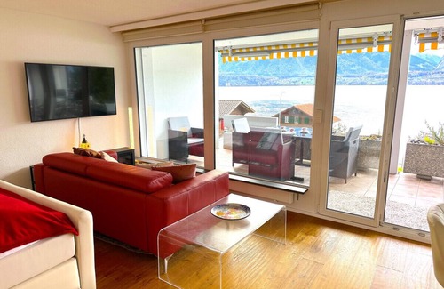 SwissHut Stunning Views Alps & Lake - Apart Oberländer is located in Oberhofen am Thunersee. SwissHut Stunning Views Alps & Lake - Apart Oberländer provides accommodation, featuring Security/Safety, Bedding/Linens, Wellness Facilities, among other amenities. This Apartment features Security/Safety, Bedding/Linens, Wellness Facilities, to make your stay a comfortable one.
