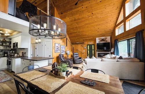 The Knotty Bear welcomes guests of all ages! This 3 bedroom, 2 bath cabin can sleep up to ten guests (6-8 adults). The thoughtful, modern touches combined with the classic cabin feel, make this a warm yet upscale experience. It’s located in the Tahoe National Forest and is within a short driving distance of Sierra Mountain's year-round activities.