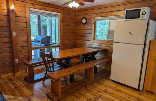 Beautiful 3 bedroom log cabin with a large deck, a complete living-room with satellite TV, Wi-Fi, full bathroom, kitchen with fridge & stove, fresh drinking water, coffee maker, microwave, crock-pot, all cooking and eating utensils, propane fireplace, air-conditioner, gas BBQ, and a fire pit out front. The cabin is private and located amongst the pine trees with a view of the water. It is located at a lodge so you get the private, peaceful cabin with the amenities of a lodge. We have; Boat rentals, Sand beach, Boat launch, Docking, Store with snacks and drinks, On site staff at all times, Bait and tackle, Walking trails, Children's playground, Gas, Screened fish cleaning hut, ATV friendly, ATV trails, And much more * A place where you can fish for delicious tasting Walleye, tackle busting Northern Pike, line stretching Small Mouth Bass, and natural spring fed Speckled Trout. * A place where hunters gather, enjoy, and appreciate the endless land, while providing food for their families and friends. * A place where all terrain vehicles can roam freely, never seeing the same trail twice. At Antlers Kingfisher lodge we strive to ensure your stay with us will be loads of fun. Your adventures will create so many new amazing memories and stories, the special kind that stay with you throughout your lifetime. We promise that you will enjoy your vacation and we look forward to seeing you soon! FOR ADDINTIONAL INFORMANTION, PLEASE VISIT OUR WEBSITE www.antlerskingfisherlodge.com