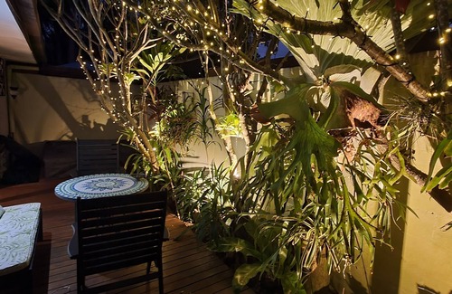 The unit has a queen size bed in the master bedroom opening up to a courtyard , a single and a daybed in the second bedroom with sliding doors which can open up to one space to the dining room. Sleeps 3 people, or 4 if you wish to use the daybed which is comfortable for sleeping. All rooms open up to a private deck or private courtyard. Dine with the bifolds open to the private courtyard with gold fish pond and water feature.