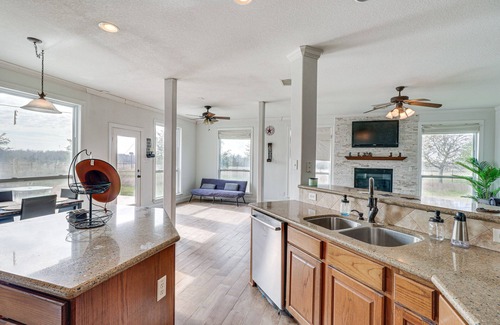 Discover a relaxing getaway at this Taylor vacation rental located near Granger Lake. This property is the perfect home base for those visiting family and friends as well as outdoor adventurers. Offering 5 bedrooms, 3.5 bathrooms, a cozy fireplace, a Smart TV, and a patio with pastoral views, everyone is sure to find a restful retreat. Ready to explore? Head out to boat, kayak, and fish, whip up a meal on the gas grill, or spend a day checking out local towns. Memory-filled moments await!