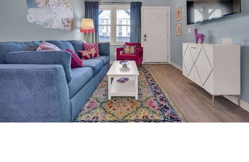 Welcome to our Taylor Swift - themed apartment. This two bedroom and one bathroom apartment, provides a comfortable space to call home after exploring a day in the music city. The living room provides ample space to relax and stream your favorite shows on our mounted flat screen Smart TV. The sofa bed also pulls out into a queen sized bed, allowing for 6 guests to stay in this apartment.
