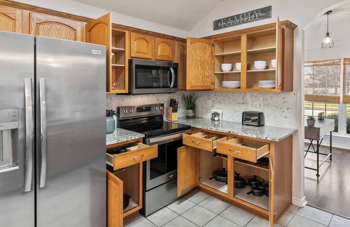 Professionally managed 24/7 by Texas Corporate Homes who specializes in insurance temporary housing. Experience comfort in our 3-bed, 2-bath haven at Lonesome Dove, Murphy. With 1,831 sq ft of space, this single-story home features a dedicated office area for remote work and a fenced pet area for your furry friends. Rest easy in our king-sized master bedroom or in one of the two cozy queen bedrooms. No pool, but a 2-car garage is available for your use. Your tranquil suburban escape awaits.