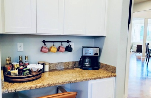 The Jordan House has two living rooms, two dining rooms (seats up to 12,) and an open-concept indoor kitchen, with a coffee bar.