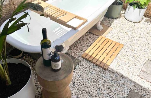 Directly off the dining room is a small private courtyard with an outdoor bath. For the ultimate experience we highly recommend bathing under the stars in our antique clawfoot bath. A truly magical experience!