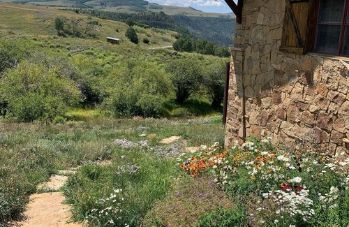 From town take Airport Road. Go 2 miles, then turn right on Last Dollar Road. Go 1 mile and you're here. Studio is down the stone steps on the East side of the house which will lead you down to your stone patio and "private" entrance. Studio Guest Parking is the East (left) space in driveway, closest to studio, leaving both garage bays open, please.