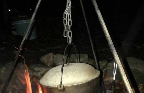 Great for families and pets, Halfmoon Hollow gets its name because of the lovely nook created by Beech and Witch Hazel trees. The fire pit is large and able to accommodate a huge fire or great for cooking using a grill and tripod. The little stream nearby is good for all gray water uses. And dogs love it! Two hiking trails are nearby-through the woods and around the perimeter of a field with a great view. Totally private but easy access to town and needed supplies.