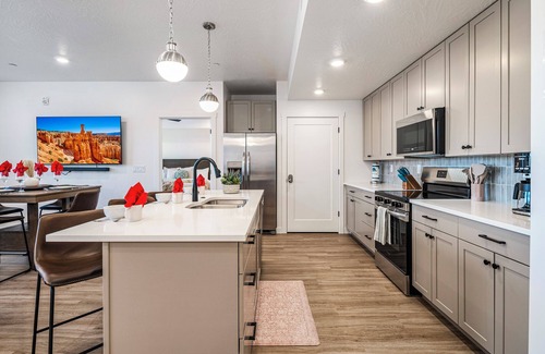 Escape to the beauty of Southern Utah with this brand new, beautifully designed 2-bedroom, 2-bathroom vacation rental condo, located in Hurricane. This new home comfortably accommodates up to 6 guests, making it an ideal retreat for families or small groups. Family Terrace is perfectly situated just a short drive from the stunning Sand Hollow Reservoir and Quail Creek State Park, this modern retreat offers the ideal location for outdoor adventures and relaxation. This condo is fully equipped to make your stay as comfortable and convenient as possible. Enjoy access to 2 top-notch community amenities - Terra West Community Amenities and Coral Springs Community Amenities, including both indoor and outdoor heated pools, a thrilling water slide, an outdoor grill and seating right by the pool so the fun doesn't have to stop, a fully equipped gym, and a clubhouse for additional relaxation.