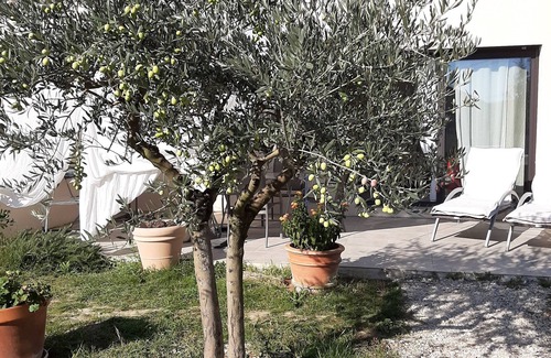New 50 m² semi-detached house, on the ground floor, with large private terrace, swimming pool, in the center of Vaison la Romaine, with 2 bedrooms, bathroom, fitted kitchen, living room, air conditioning. Breathtaking view of Mont Ventoux and the old town. Parking on the property. Sheets, duvets, blankets, towels, etc. everything is free. Owners available for advice (visits, good cellars, good plans, etc.).