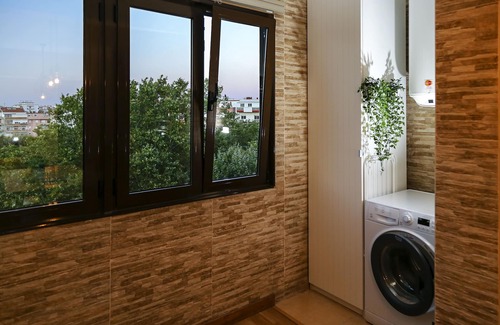 The apartment has a bedroom, a bathroom and a living room equipped with tv, couch (that turns into a bed for 2), a kitchenette, a beautiful table where you can eat, a place where you can read a book and a little laundry.