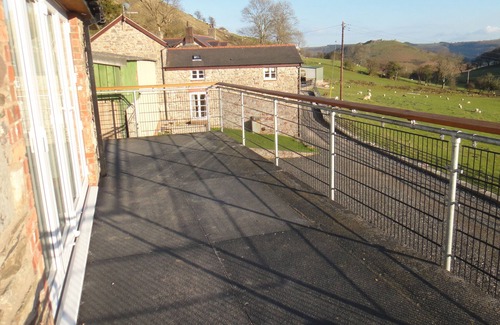 This holiday property is a two bedroom Lodge in the beautiful vale of Llangollen. It has commanding views from a vantage point high up a valley facing south. It boasts contemporary uncluttered styling, underfloor heating and large folding patio doors opening onto a large balcony with table and chairs. This property being on one level is disability friendly with wide doorways however no special equipment is installed.