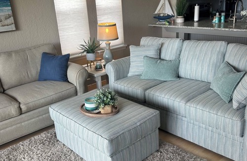 Your Surf City adventure begins at this marvelous ocean view 1-bedroom / 1.5 bath condo. Perfect for a couple or small family after being remodeled in 2019. Amenities include:
