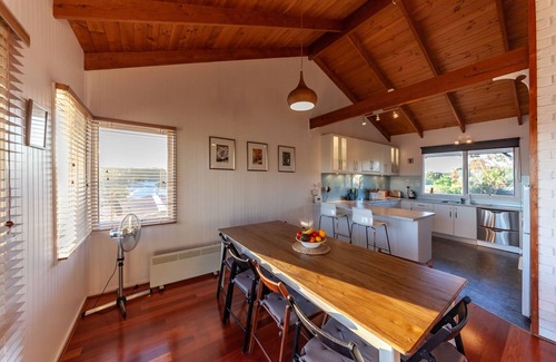 The Albatross is a spacious 4-bedroom, 2-bathroom, double-storey timber beach house located in the heart of Port Campbell. Originally built in the 1980s, this distinctive home is characterized by its blue veranda poles. Formerly known as 'Pine View,' it was renamed 'The Albatross' in 2016 and has recently undergone a partial renovation. Updates include a fresh coat of paint, new flooring, window coverings, and other modern fittings.