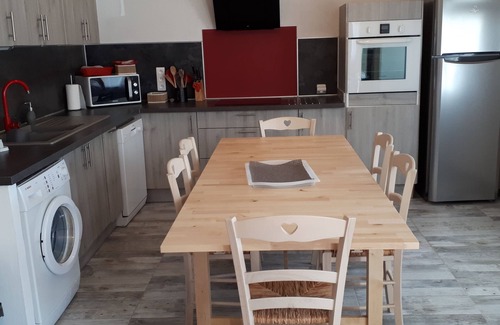 On the ground floor, a large living room (television, internet), kitchen (washing machine, dishwasher, microwave, fridge freezer and small appliances) .A room bed 160, a bathroom with shower , washbasin and wc.