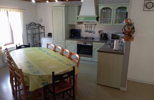 Kitchen equipment : Fully equipped kitchen (oven, hob, microwave, dishwasher, fridge-freezer, cookware, table service, toaster, fondue and raclette set, etc.). Washing machine, dryer, iron and ironing board, vacuum cleaner, and baby essentials (high chair, bed).