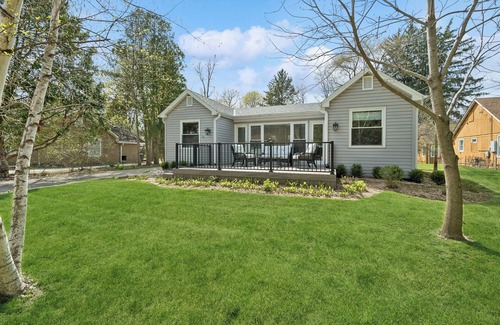 Tucked in a quiet setting, The Bay Getaway is a wonderful setting to enjoy time together at the lake. Spread out in this recently renovated ranch home with a chef's kitchen, luxury spa-like baths and great outdoor spaces. 4 comfortable bedrooms with hotel-quality linens sleeps 10 guests comfortably. This house is set up to accommodate groups - gather in the living room with plenty of comfortable seating plus have an "away room" with seating and a TV for additional space. 4 private bedrooms - one a bunk room perfect for kids! Lots of outdoor patio seating to enjoy summer evenings dining al fresco and enjoy s'mores around the fire pit. Plenty of driveway parking. All this just a short walk to the corner store for all your stay's needs! Another 3 blocks further to the public beach and lakefront where you can enjoy swimming, sun bathing, public boat launch and hiking in Kishwauketoe - Williams Bay's protected nature conservancy. Enjoy dining and entertainment at any of our local restaurants, bars and cafes. Enjoy a day on the lake with a boat rental or let us help you coordinate a pick up by the Lake Geneva Cruise Line for a lovely tour and ride to downtown Lake Geneva.