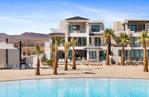 Welcome to The Beach Front, our luxurious beachside retreat in the heart of Southern Utah’s Desert Color oasis! Nestled along the white sands of a breathtaking 2.5-acre lagoon, this custom-built vacation home offers an unmatched getaway. Highlights include a private pool and hot tub, two fire pits, five elegant master suites, two spacious bunk rooms, multiple family rooms, and a gourmet kitchen with a wine cooler in the garage. Enjoy expansive outdoor living on the 1,500 sq. ft. patio and the stunning 1,700 sq. ft. pool deck, as well as a spectacular party deck. This one-of-a-kind desert beach escape awaits!