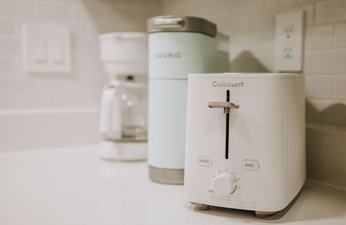 The open living area includes a large Smart TV, plenty of seating, and free WiFi for streaming or working remotely. A fully equipped kitchen with Keurig and drip coffee makers, and all the essentials that make it easy to prepare meals when you’d rather stay in than head out to Ocean Springs’ many dining hotspots.