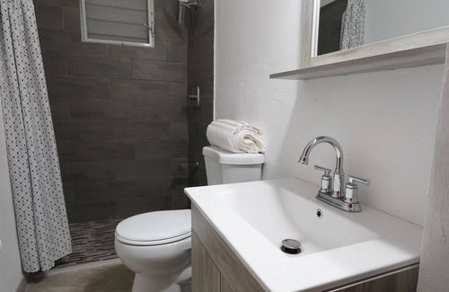 Located in San Juan, this 2-bedroom, 1-bathroom vacation home lets you experience it all. Fans of nature and the outdoors will love being 3 minutes by car from Luis Munoz Marin Park and 5 minutes from Jardin Botanico. There's convenient onsite parking, so you can leave your vehicle behind and let your feet make short work of the 12-minute walk to Plaza las Americas or the 12-minute walk to Hiram Bithorn Stadium.
