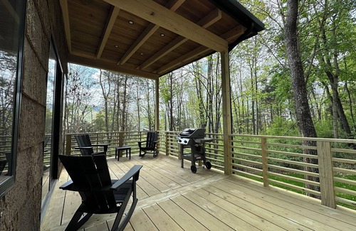 3.5 miles to VT, brand new, built in 2024, King Bed, Tile shower, fully stocked Kitchen, large porch with privacy. Sit on the deck and watch the wildlife, deer, squirrels, turkey and enjoy the privacy and peace of the surrounding woods. 5 minute drive to downtown Blacksburg but feels like you are out in the country. Beautiful view of the mountains peaking through the trees.