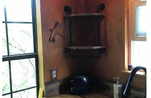 Earthen floor and beautiful views of the orchard & distant mountains. Private outdoor hot shower & composting toilet.