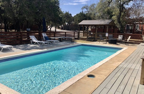 Yes, this Austin cabin has a swimming pool. Check the Facility Overview section for details about the pool and other available facilities.
