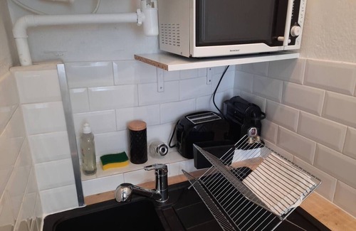 As you settle into the place, you'll find a living room and a dining area. Enjoy the WiFi and TV. The kitchen is equipped with a stovetop and a refrigerator, as well as a coffee maker, a microwave, and cookware. Other amenities include bed sheets, an ironing board, and heating.