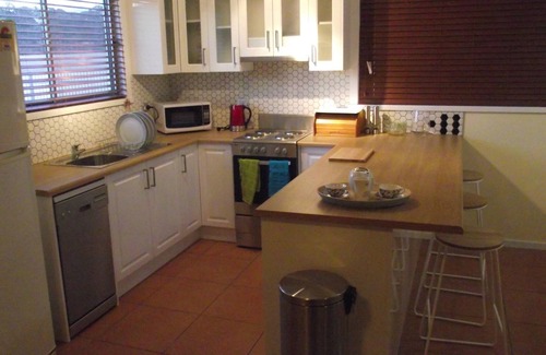 Bed's are made, ready for your stay. Linen provided, Cutlery, Plates, Kitchen Utensils, Microwave, Kettle, Toaster, Iron, Hairdryer, Dishwasher, Reverse-Cycle Air-Conditioning maintains temperature with Remote Control, 2 TV's, 2 DVD Players, Extra Heaters for Bedrooms, Fan, Bedside Lamps, BIW in Main Bedroom, Wardrobe in 2nd Bedroom with 2nd Sofa, Washing Machine/Laundry in Bathroom, Separate Bath, Shower, Vanity all with On-Demand Hot Water, Heat/Light/Fan Unit, Curtains/Blinds/Carpet or Floating Timber Floors throughout, Desk & Return, Porta-Cot.