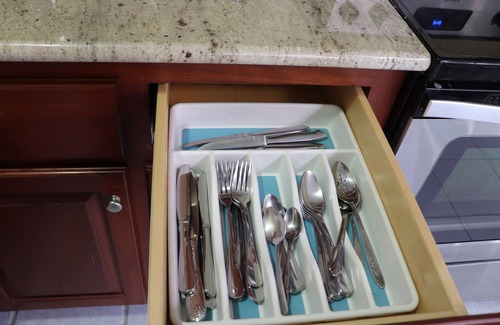 Kitchen: fully stocked. dishwasher, stove/range/oven, full refrigerator with ice maker, microwave. Seating for four. Service for eight. Both a drip and Keurig coffee pot are offered for guest use.