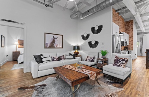 Perfectly suited for families or small groups, our spacious Bonnie offers the ultimate in comfort and convenience with upscale Hill Country style. This thoughtfully designed suite features a full kitchen complete with an oven, stove top, full-sized refrigerator, microwave, and coffee maker—ideal for extended stays or home cooked meals. Gather around the dining area or relax in one of the multiple cozy seating spaces throughout. Step outside to your expansive private covered patio, complete with an outdoor pellet grill and lounge seating, perfect for entertaining or simply enjoying the fresh air. Designed for restful nights and privacy, the Bonnie includes a king bed and a queen Murphy bed in separate sleeping quarters, along with two full bathrooms featuring an oversized tub and shower. Whether you're traveling with family or friends, this well-appointed retreat provides the space and amenities to make your stay truly exceptional.