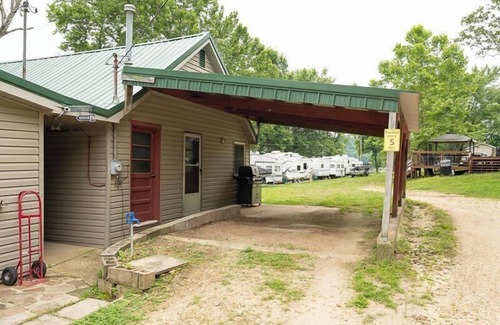 Escape to a tranquil retreat! This cozy cabin offers a perfect getaway for relaxation. Enjoy modern amenities, including air conditioning and a fully equipped kitchen. Located 10 minutes from Ballparks National, 20 minutes from HaHa Tonka State park and 30 minutes from the new Super Splash USA! waterpark, it's a haven for fun and adventure. Explore the scenic beauty of the area, with opportunities for boating and fishing. Located at Prairie Hollow Camp, enjoy the convenience of an old fashioned