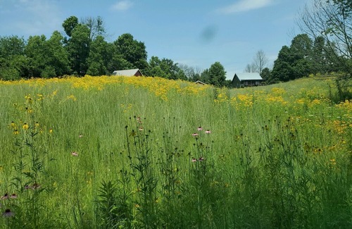 The Cabin is located on 30 acres and boasts stunning backyard prairie views and endless wildlife. It features a 1 bedroom, memory foam queen mattress sleeper sectional, queen air mattress, full bath, laundry, kitchen, living room and full unfinished basement. Outside you will enjoy a private fire pit, 2 car detached garage, private back porch, tree swings, walking path, food plots for wildlife and wildflowers. Come and relax and enjoy! We look forward to welcoming you at your next stay.