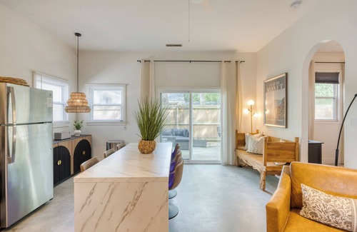 Tucked just behind the main house in Old Mount Pleasant, The Cannon Cottage is a spacious and stylish hideaway with thoughtful design, soaring 12-foot ceilings, and an abundance of natural light. This two-bedroom, two-bathroom guest home offers a relaxed, private escape just minutes from Sullivan’s Island beaches and the vibrant dining scene along Shem Creek.