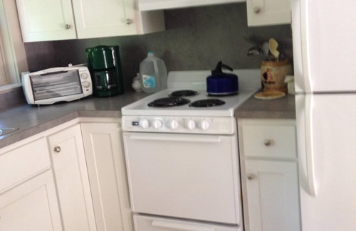 The cozy Carriage House with an extremely efficient open floor plan, and well equipped kitchen, feels much larger than its actual size The oven and stove are electric and the kitchen window offers a view of our woodland and estuary. The dining table sits in front of a bay window with a view of the ocean and tree covered islands. The inviting sitting area has a propane stove, small library, satellite TV, and DVD and CD players. The cottage has two cozy bedrooms each with double beds, and a full bath. The larger bedroom also has a double hide-a-bed. The front deck offers an additional relaxing or entertaining area, and an ocean view.