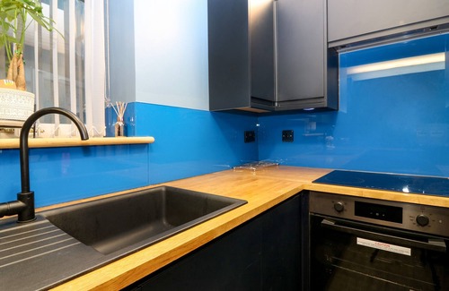 The living areas in this duplex apartment consist of a kitchen/diner equipped with oven, hob, microwave, fridge/freezer, dishwasher and dining table for two, there is also a first-floor sitting room with Smart TV and Juliet balcony. There is one double bedroom serviced by a ground-floor bathroom. Outside there is one off-road, designated parking space in the pub car park and access to the pub's beer garden. Within 2.3 miles there is a shop and 0.1 miles a pub which the property adjoins. Highchair, travel cot and stairgate available on request. One well-behaved dog welcome, but sorry, no smoking. WiFi, fuel, power, bed linen and towels are all included in the price. Explore Perthshire at The Cavern at the Tavern. Note: This property is adjoined to a pub and overlooks the pub's beer garden.