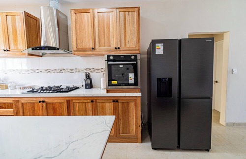 Within the house you will enjoy a fully equipped kitchen. 4 rooms, 2 of them with their full private bathroom. 1 other full bathroom. Each room has a TV and is freshly decorated. All rooms have air conditioning.. The master bedroom has access to the backyard with a stunning view of the pool and the beach, additionally the master bathroom has a jacuzzi. You will find board games, one baby foot and one Toad in the hole game. Fully access to the infinity pool and the beach. The exterior is equipped with an exterior shower and outdoor furnitures.