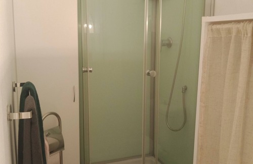 The kitchen is equipped with an oven, a microwave, and cookware. Bathroom amenities include a hair dryer, towels, and toilet paper. Other amenities at this 1-bedroom, 1-bathroom rental include bed sheets, an ironing board, and heating.
