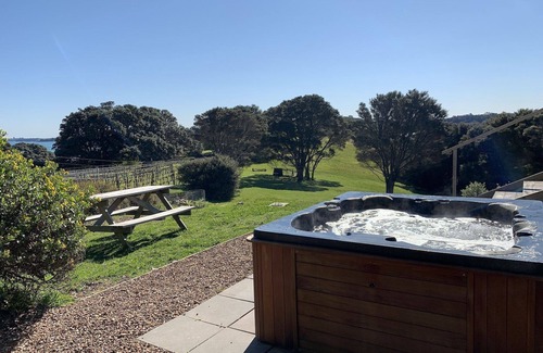 Escape to The Cottage at Te Whau Retreat and enjoy the privacy and comfort of this newly completed two bedroom holiday home offering lovely sea and rural vineyard views.