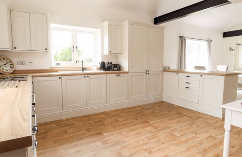 This single-storey property consists of an open-plan living space with a kitchen with electric oven, ceramic hob, microwave, fridge/freezer, dishwasher, ample dining seating and a sitting area with Smart TV. The bedrooms consist of a king-size with an en-suite and two doubles, also with en-suites. Outside, there is a patio area and lawned garden with furniture, as well as off-road parking for three cars. WiFi, fuel, power, bed linen and towels are all included in the price. Apologies, no pets and no smoking allowed. Within 3.3 miles there is a shop and within 2.2 miles, a pub. The Cowhous is a gorgeous stay in the countryside of Shropshire. Please note: The owner lives on-site. Please note: Check-in is 3.30 pm and check-out is 10am. Please note: Outdoor shoes cannot be worn inside.