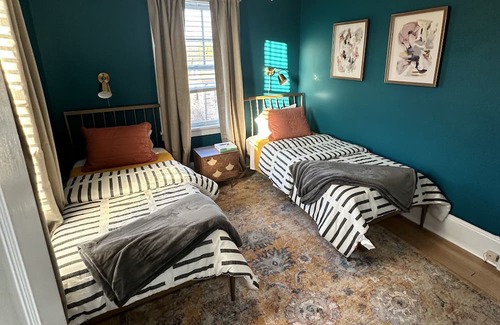 Guests have full access to the entire home (with exception to the cellar) which includes 3 full bedrooms (1 queen bed, 2 twin beds downstairs and 1 king bed upstairs) and 2 bathrooms (one on each level). There is a full kitchen, dining room and living room. The living room couch is a pull out queen sofa-bed. There is one additional room upstairs that is used by the owners for property storage that may be locked.